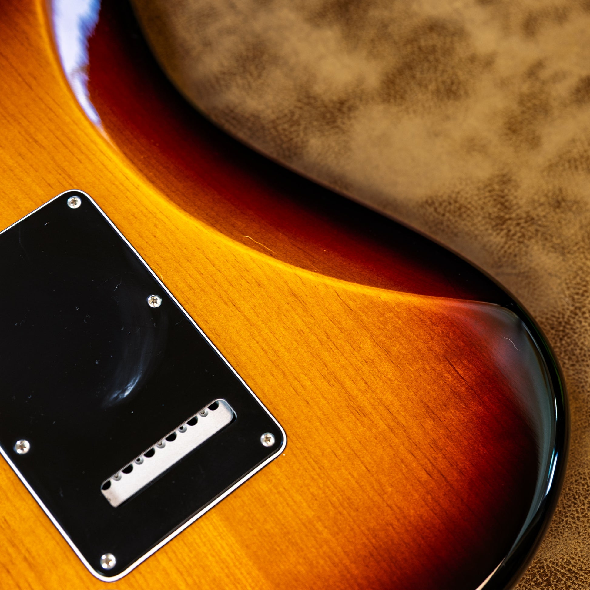 The 3-Color Sunburst finish is everything you want it to be — deep edges, glowing amber center, classic black guard. Under light, it absolutely pops. Flip it over and you’ll find only very light buckle rash on the back — so minimal it’s honestly hard to even notice unless you’re looking for it. Overall, it’s in excellent condition.
