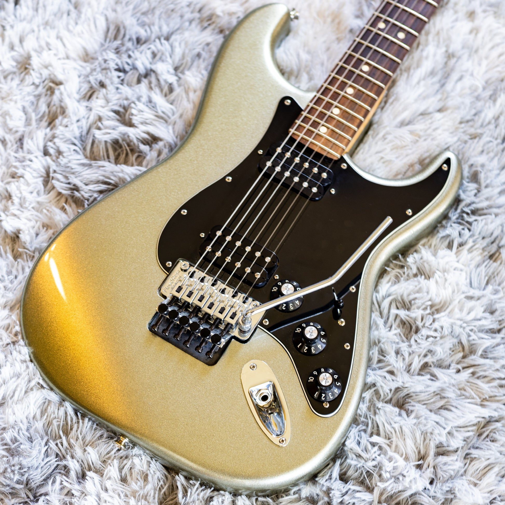 It’s in incredible shape all around. The Floyd Rose is balanced perfectly and feels smooth as butter. Plug it in, and it’s got attitude for days. The dual humbuckers deliver that thick, aggressive growl you’d normally chase from a Les Paul, but with all the comfort and playability that makes a Strat a Strat. Honestly, these things put Les Pauls in a corner.