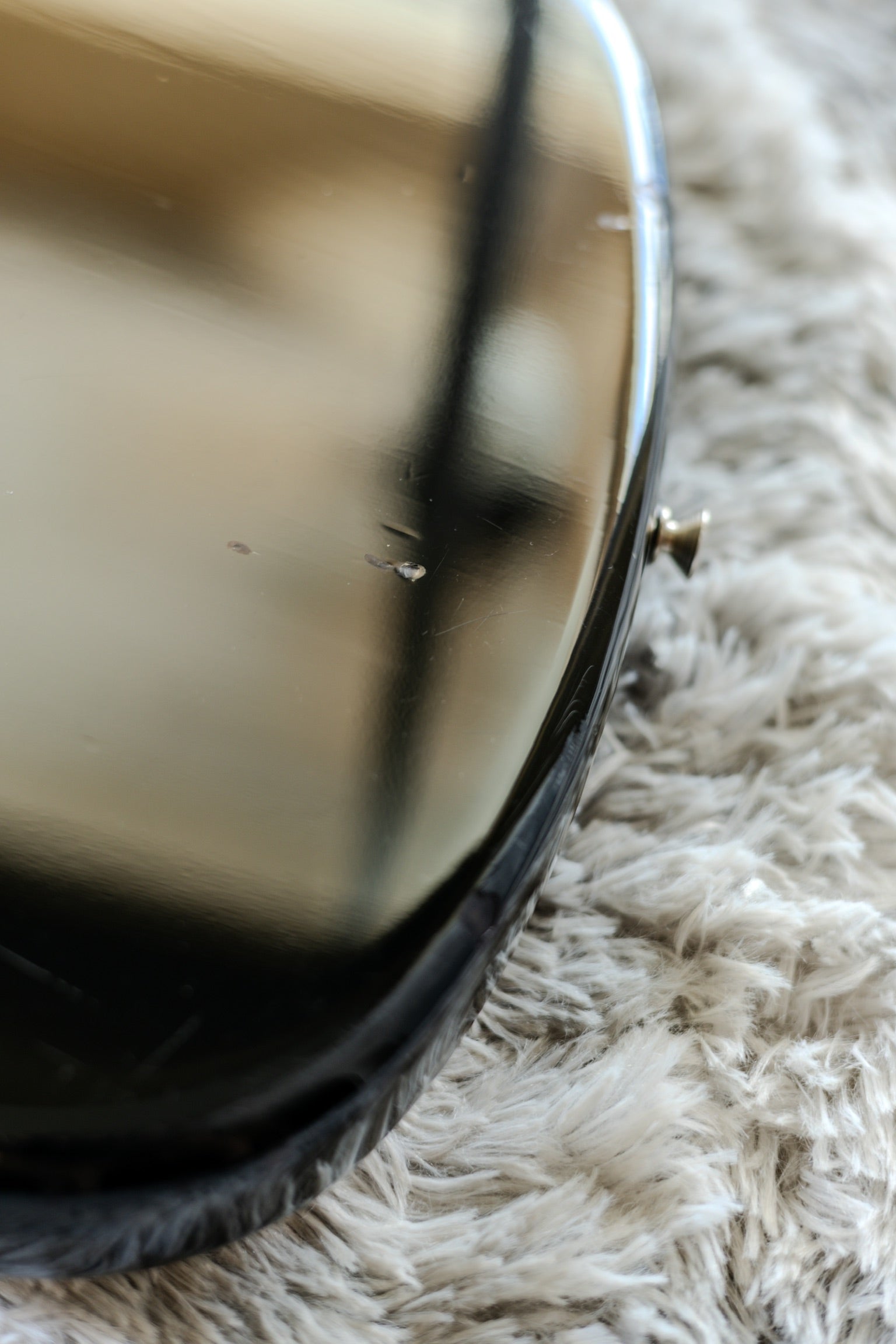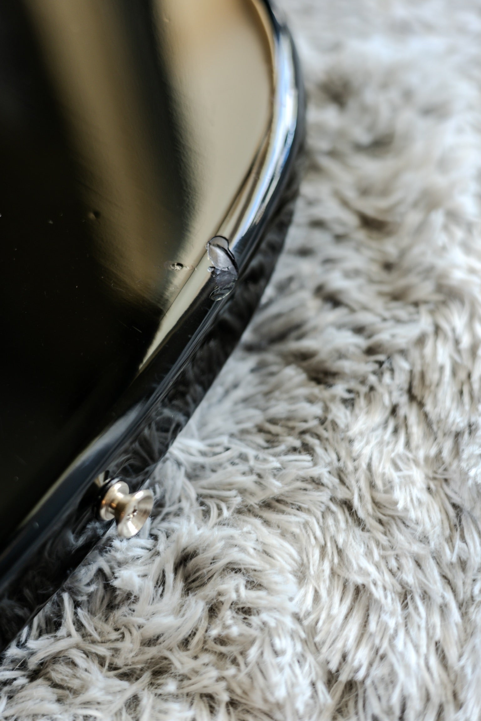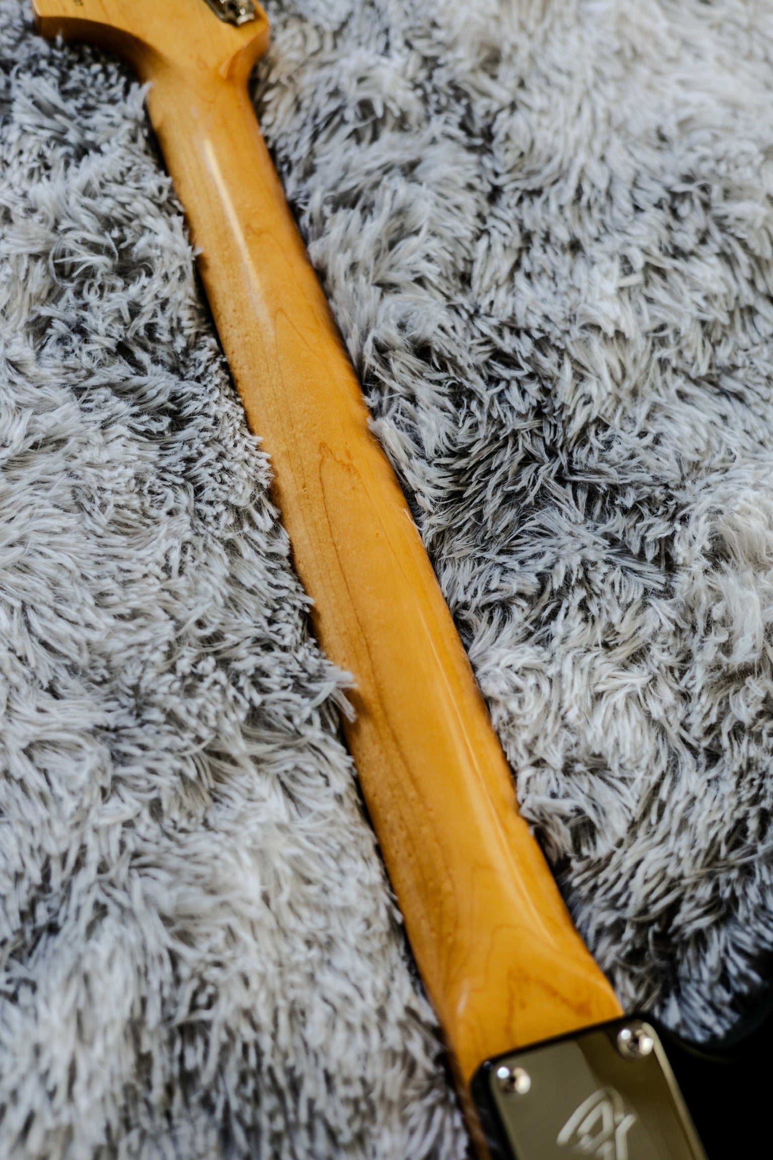 It’s in excellent condition overall, with just a couple of small chips on the bottom edge of the body. These have been carefully treated with ebony stain to preserve the finish and protect the wood. They’re very hard to notice unless you’re hunting for them, and they don’t take away from the guitar’s stage-ready look.