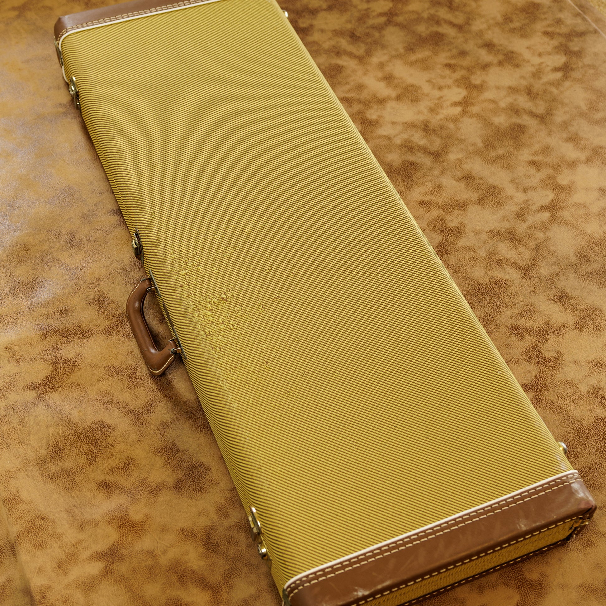 It comes with the original Fender vintage tweed case, complete with that killer red interior — a perfect match for the Torino Red finish and a huge part of the classic vibe.