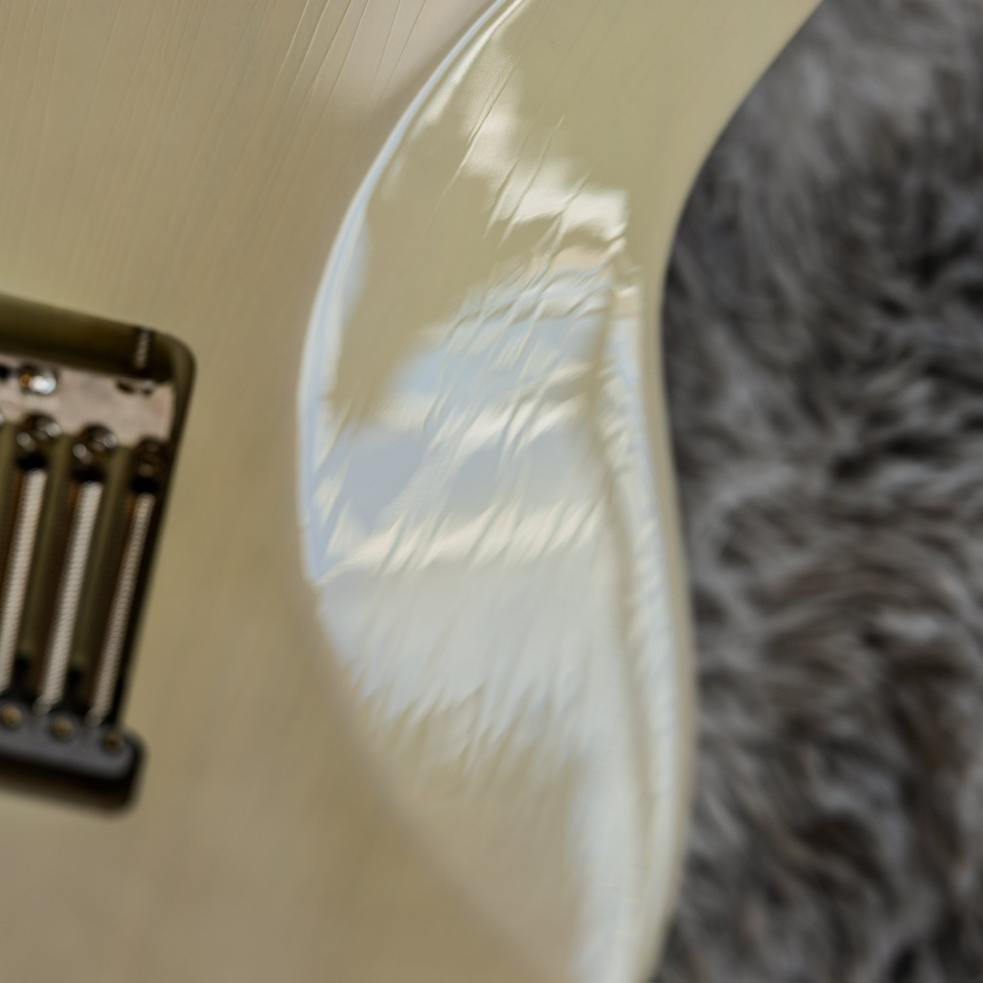 Visually, this one tells a story. The White Blonde nitro finish shows finish checking and hairline cracks throughout, which honestly gives it a killer vintage-leaning look. It’s the kind of checking that’s hard to notice from a few feet away, but once you see it up close, it adds character rather than distraction — very “played, loved, and aged naturally.” Beyond that, there are a few small bumps here and there, all purely cosmetic and consistent with careful use over time.