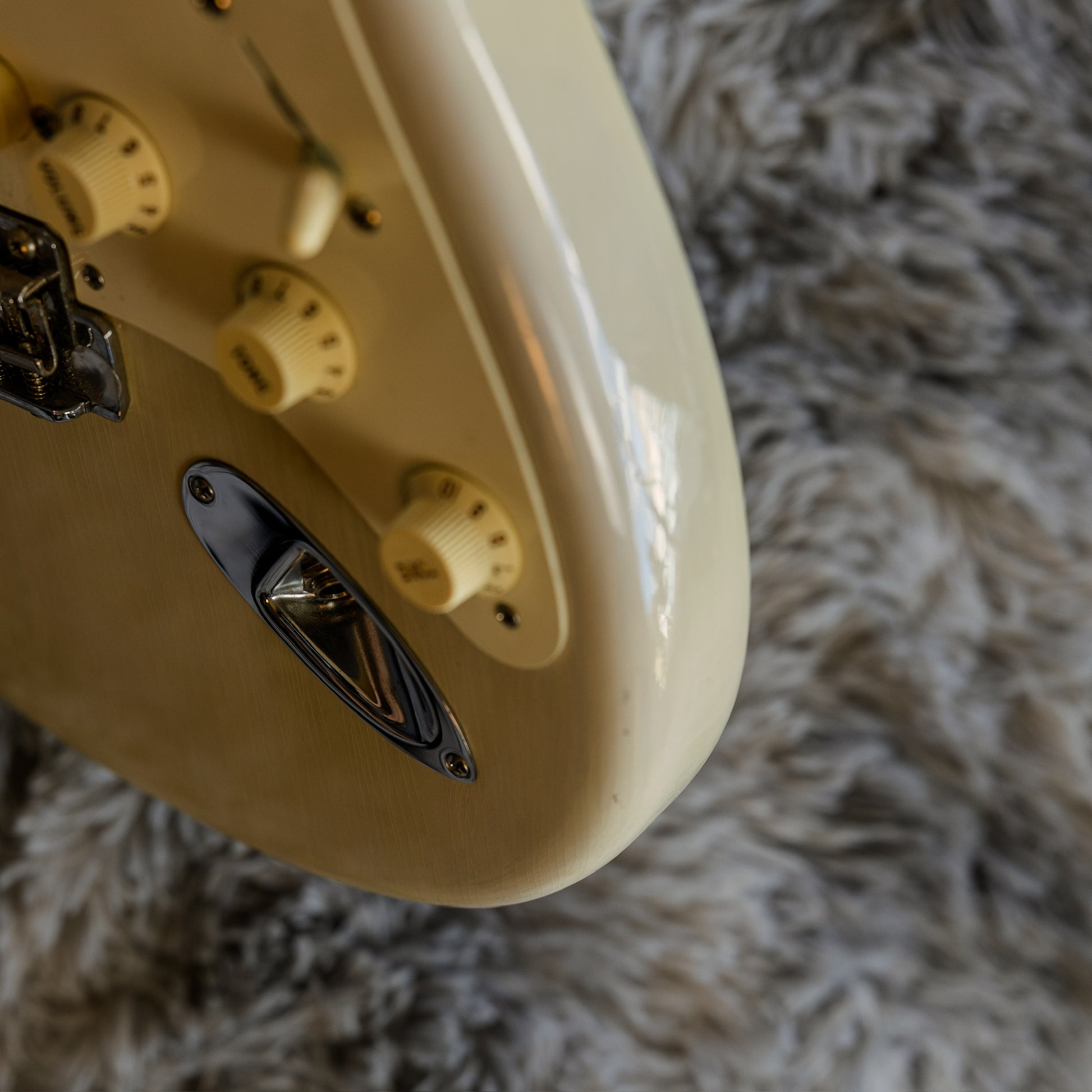 Structurally and functionally, this guitar is in very good condition. The neck is straight, frets feel great, and it plays effortlessly thanks to a recent setup. The maple fretboard has that smooth, fast Eric Johnson carve that just melts into your hand — not chunky, not skinny, just right.