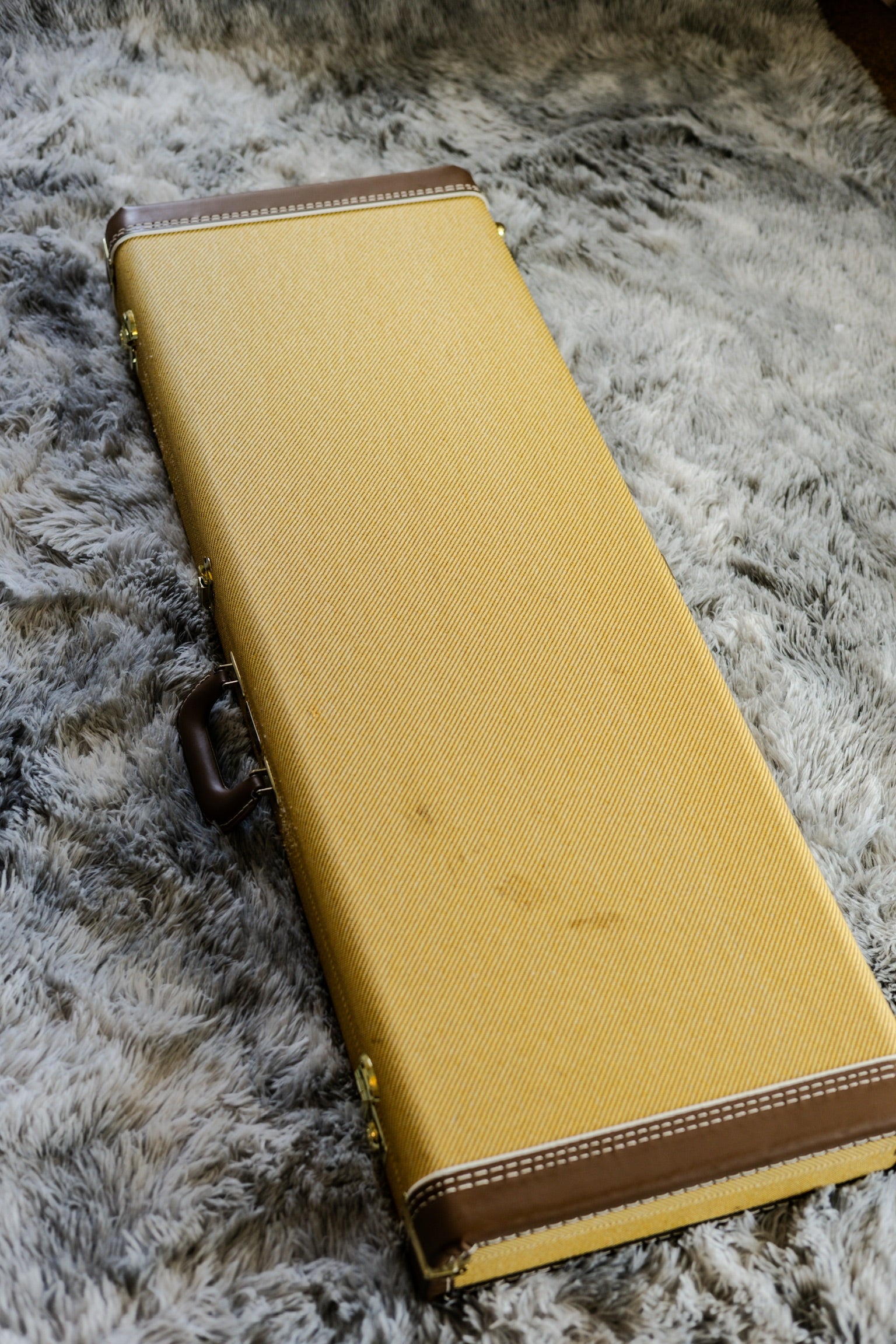 Includes the original vintage-style Fender tweed hard case, Certificate of Authenticity, black coiled cable, white seatbelt strap, custom chrome neck plate, and all original case candy. The eight round mirrors are untouched in their packaging, giving you the option to install them or keep it clean.