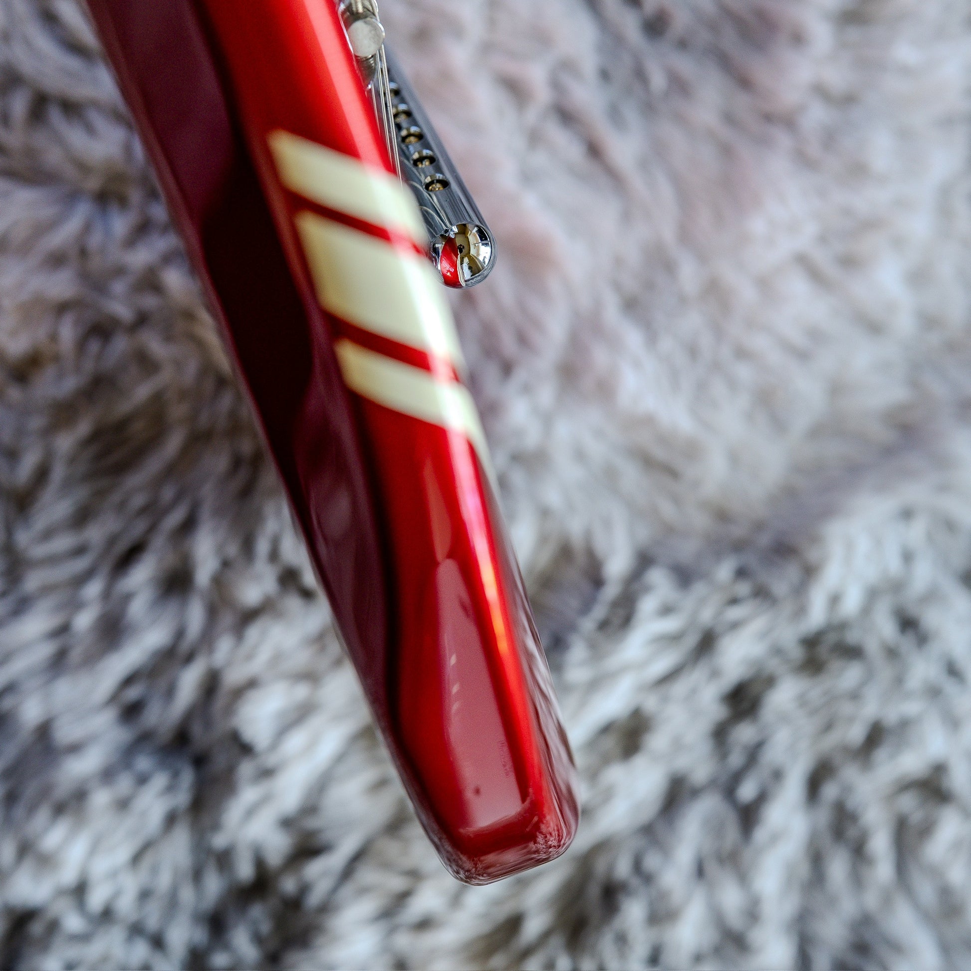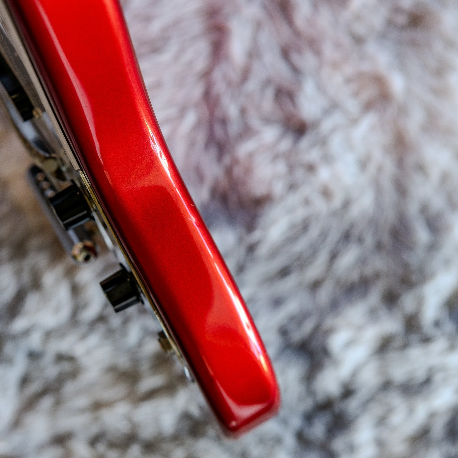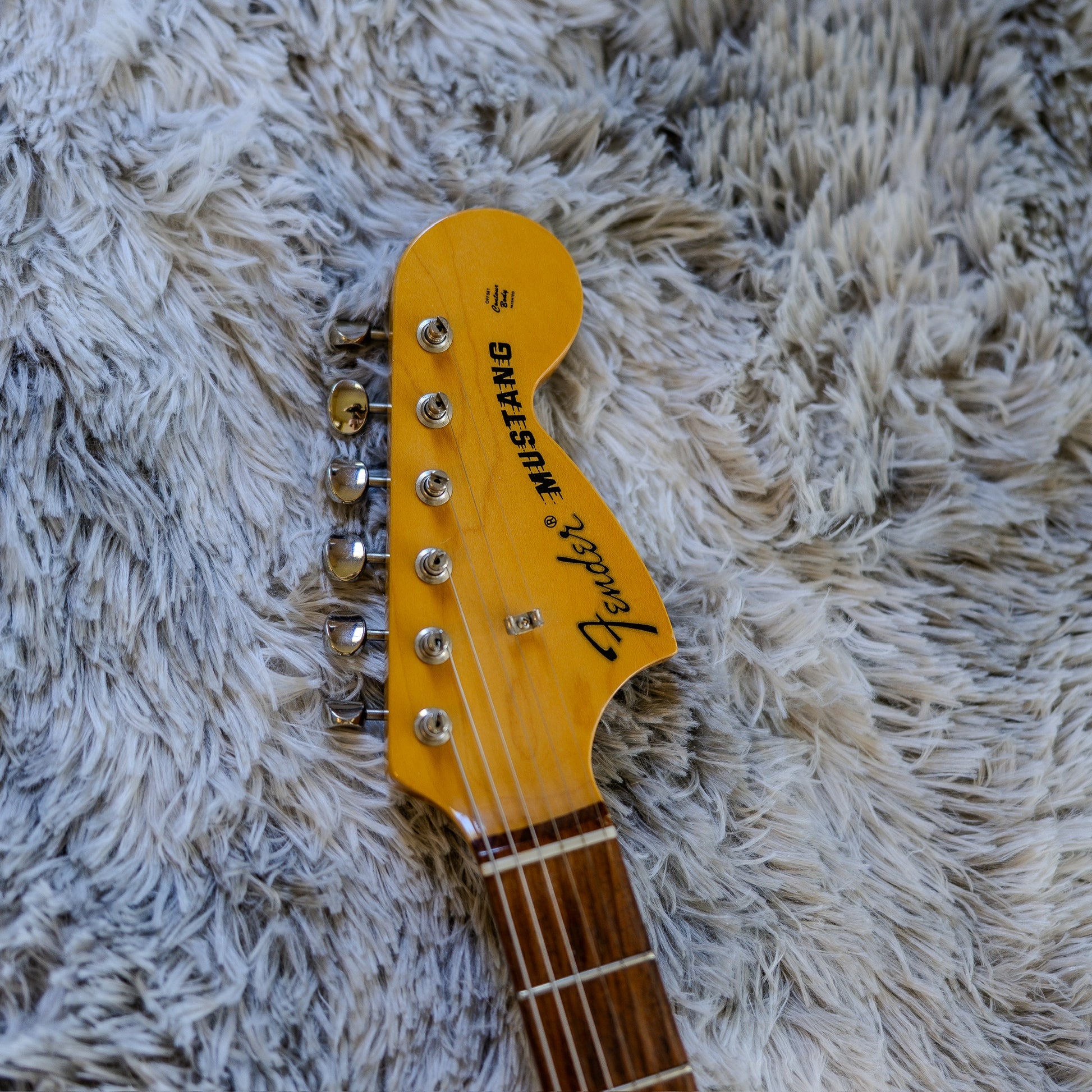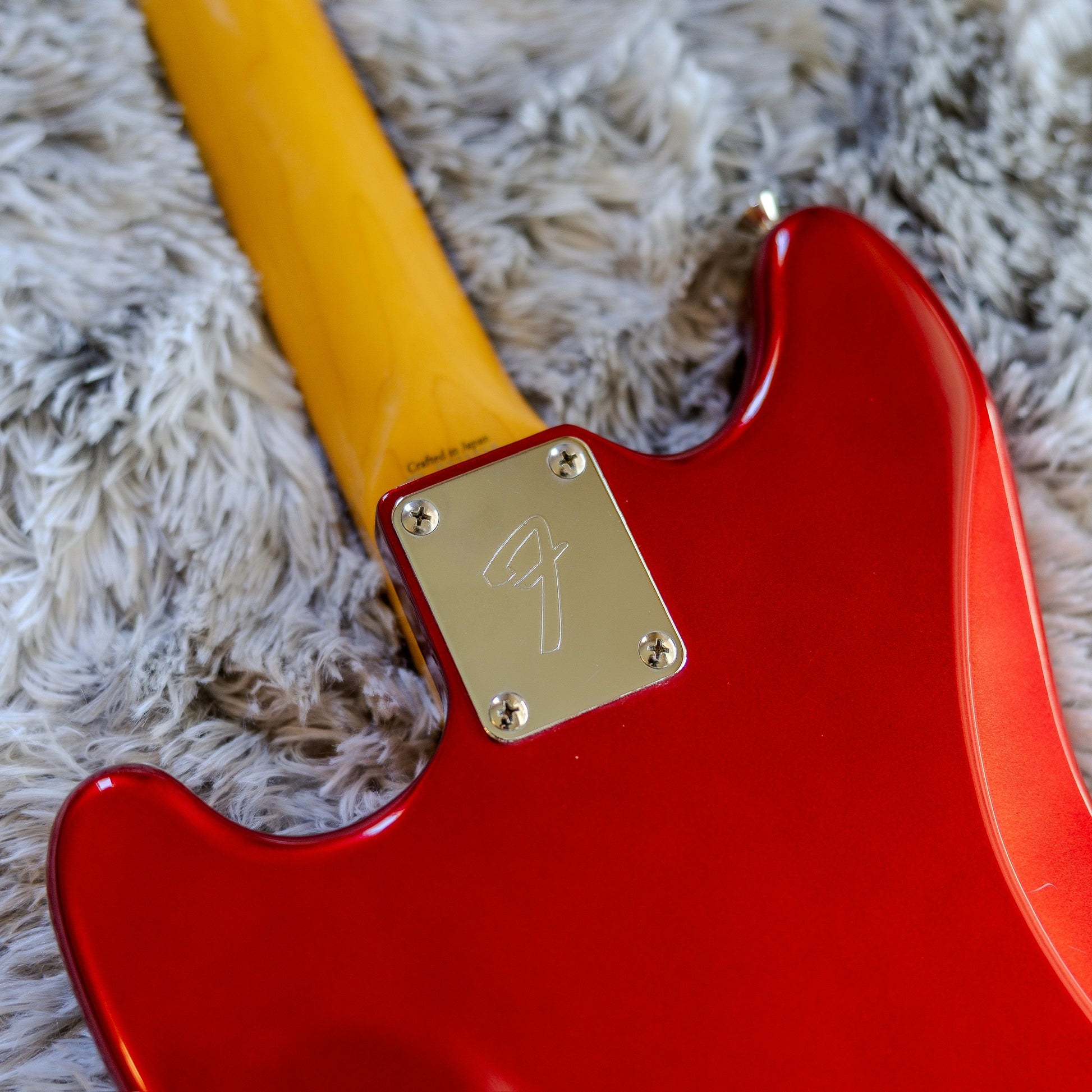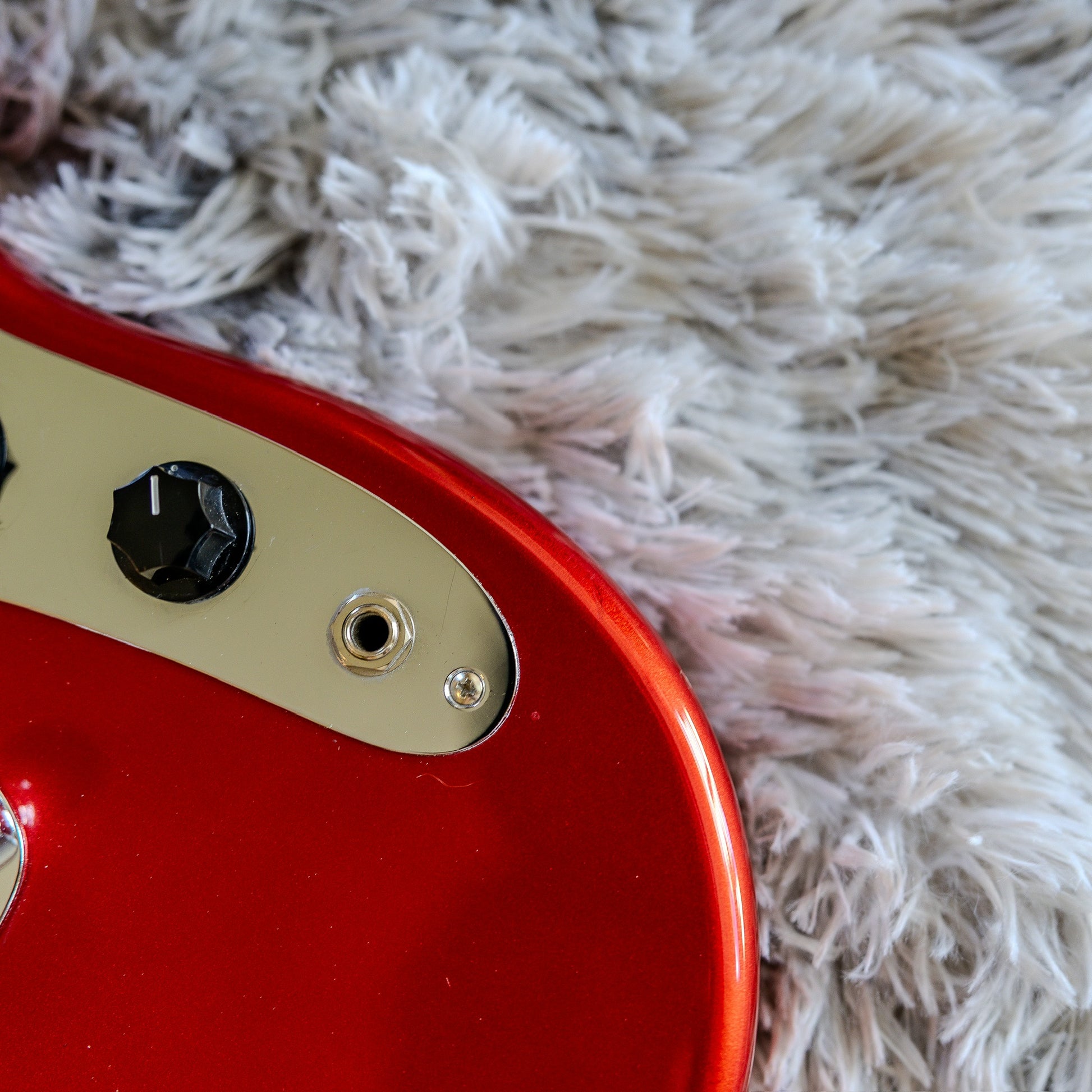 Here’s a beautiful 2002 Fender MG-73 Mustang, made in Japan (CIJ), finished in that classic Candy Apple Red with a rosewood fingerboard. It nails the vintage Competition Mustang vibe — lightweight, short-scale, and super fun to play.