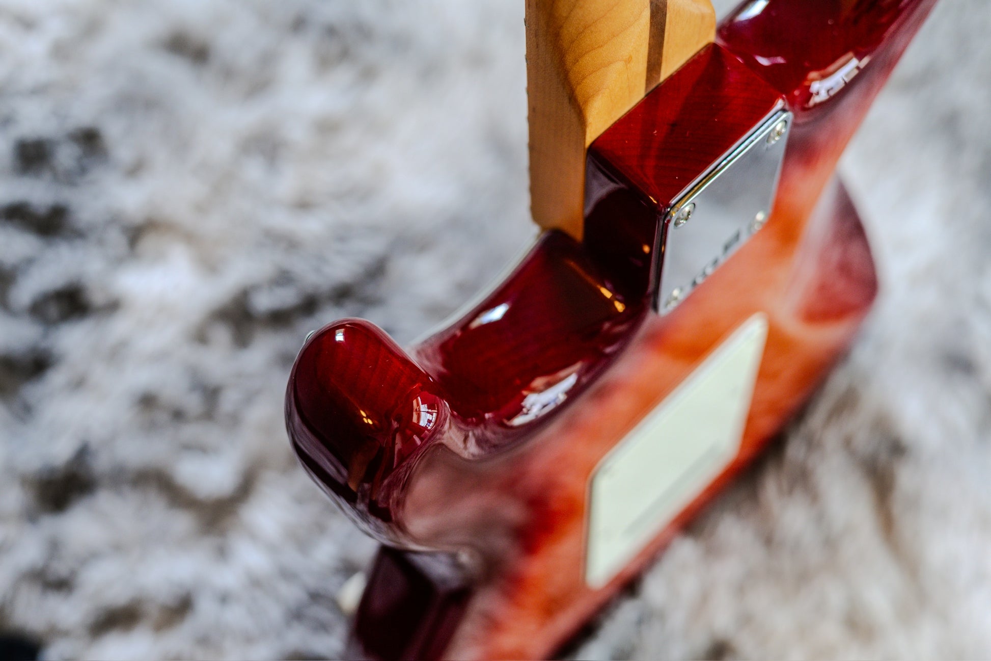 This HSS Plus Top Strat is one of those guitars that hits the sweet spot between looks and performance. The flame maple top is seriously stunning in person—photos can’t quite capture the depth and shimmer it gives off under light. Easily one of the prettiest tops you’ll find in this range.
