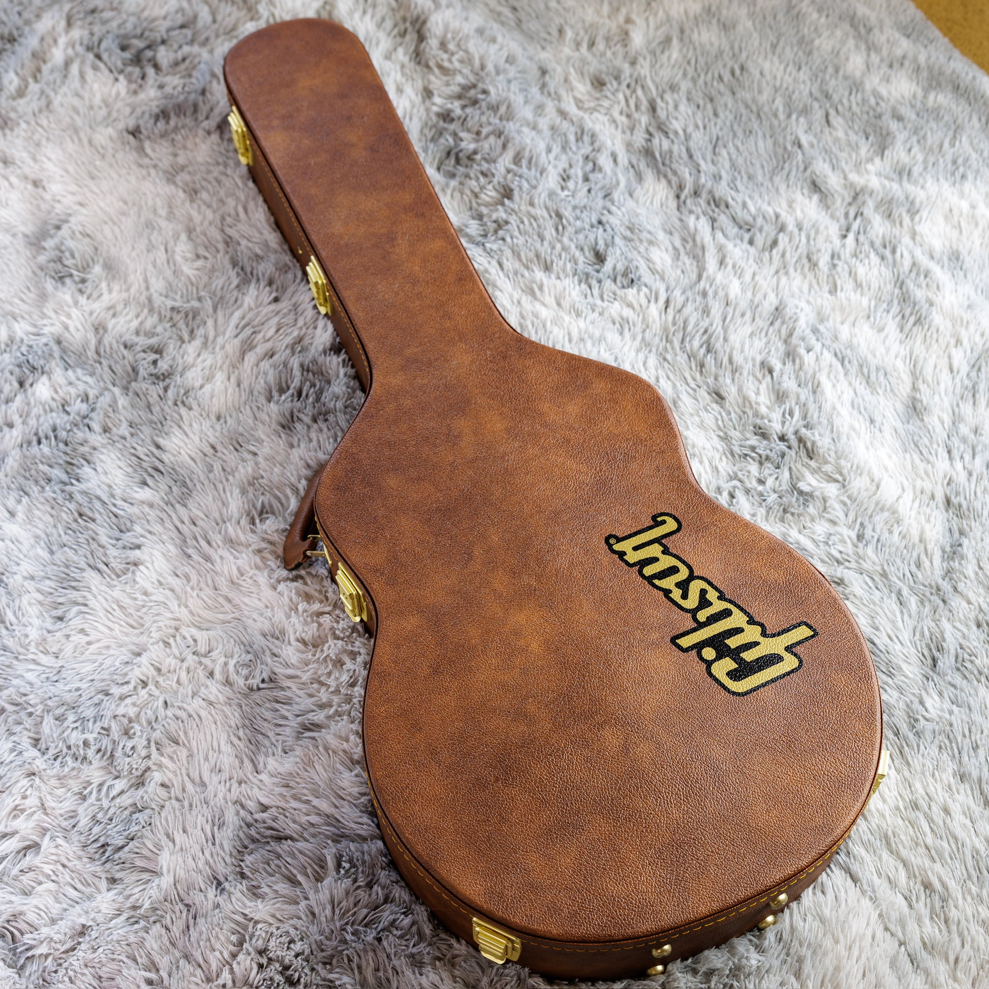 Condition-wise, it’s as close to showroom as you’ll find. The pickguard still has the protective plastic on it, the hardware is spotless, and there’s not a mark worth calling out. The original Gibson hardshell case is also in excellent shape and includes all the proper OHSC and case candy.