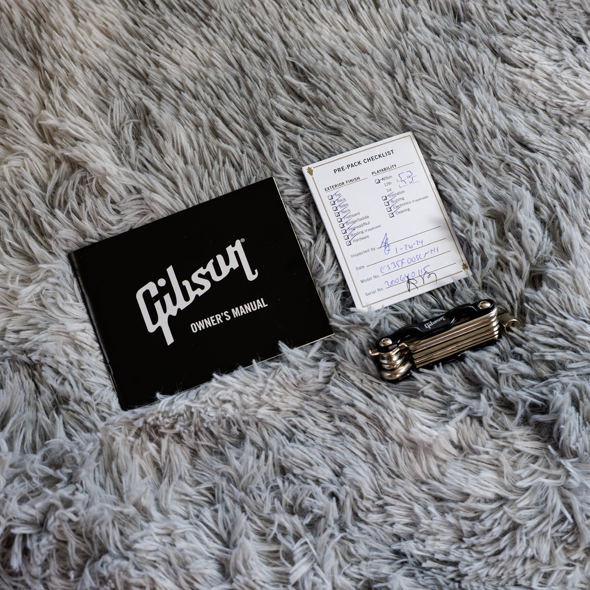 Condition-wise, it’s as close to showroom as you’ll find. The pickguard still has the protective plastic on it, the hardware is spotless, and there’s not a mark worth calling out. The original Gibson hardshell case is also in excellent shape and includes all the proper OHSC and case candy.