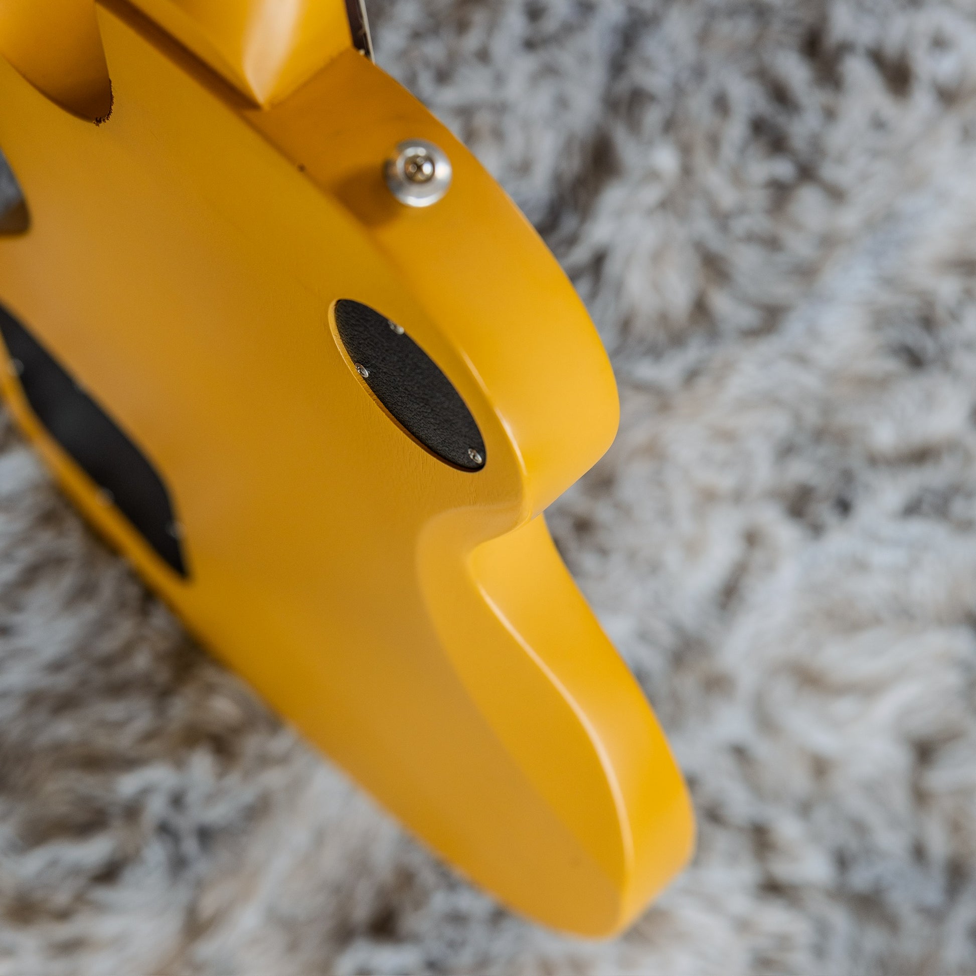 The satin nitro finish looks absolutely stunning in person. It has that soft, vintage-inspired glow that feels broken-in rather than flashy, letting the guitar’s lines and simplicity do the talking. Condition-wise, it’s very clean overall. The back shows some honest play wear along the edges—nothing excessive, just the kind of wear you’d expect from a guitar that’s been enjoyed rather than babied. From the front, it presents beautifully.