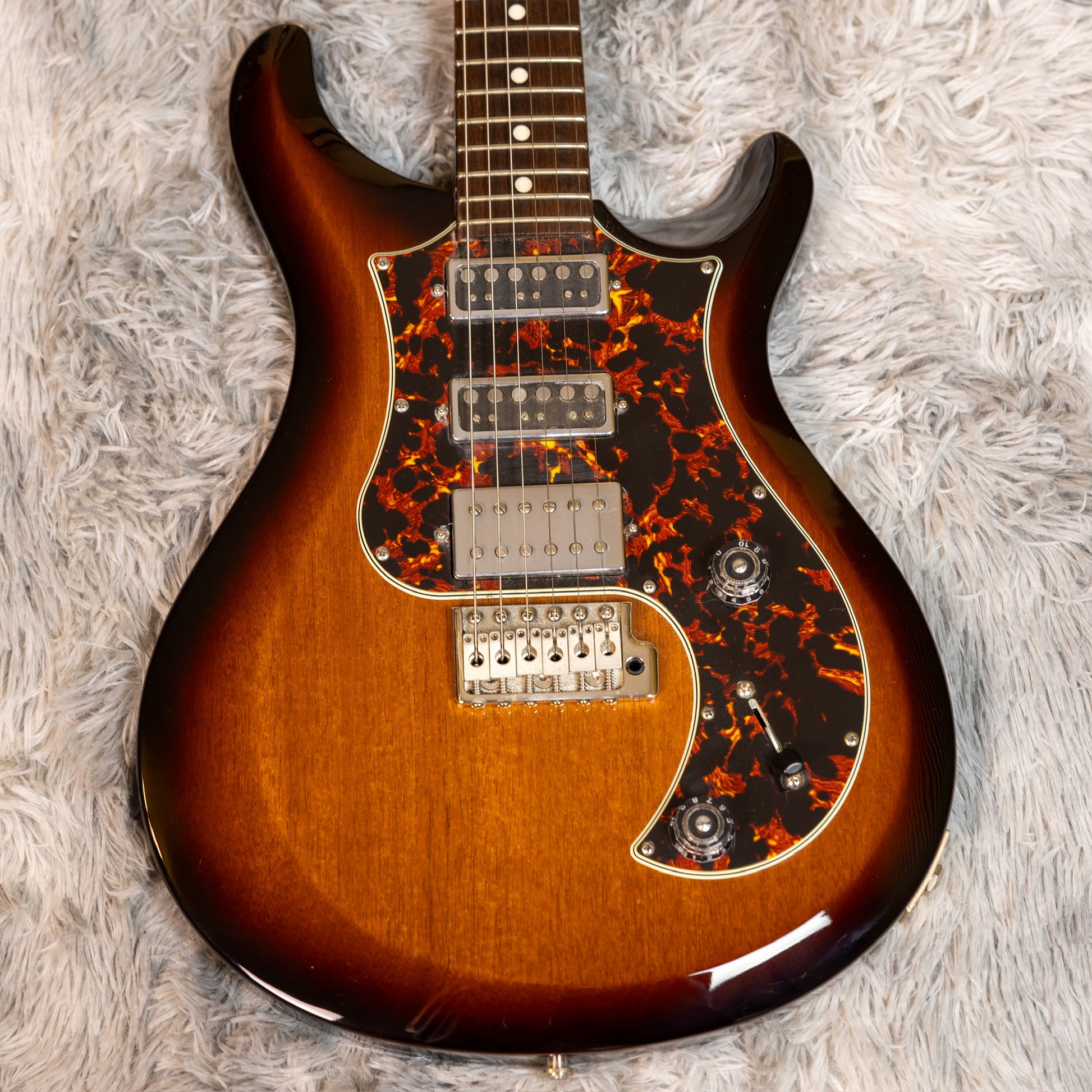 The neck feels smooth and fast in the hand, the frets are clean, and the setup is fully dialed in. Intonation is spot-on, action is comfortable, and it plays exactly how you expect a PRS to play—effortless, precise, and refined.