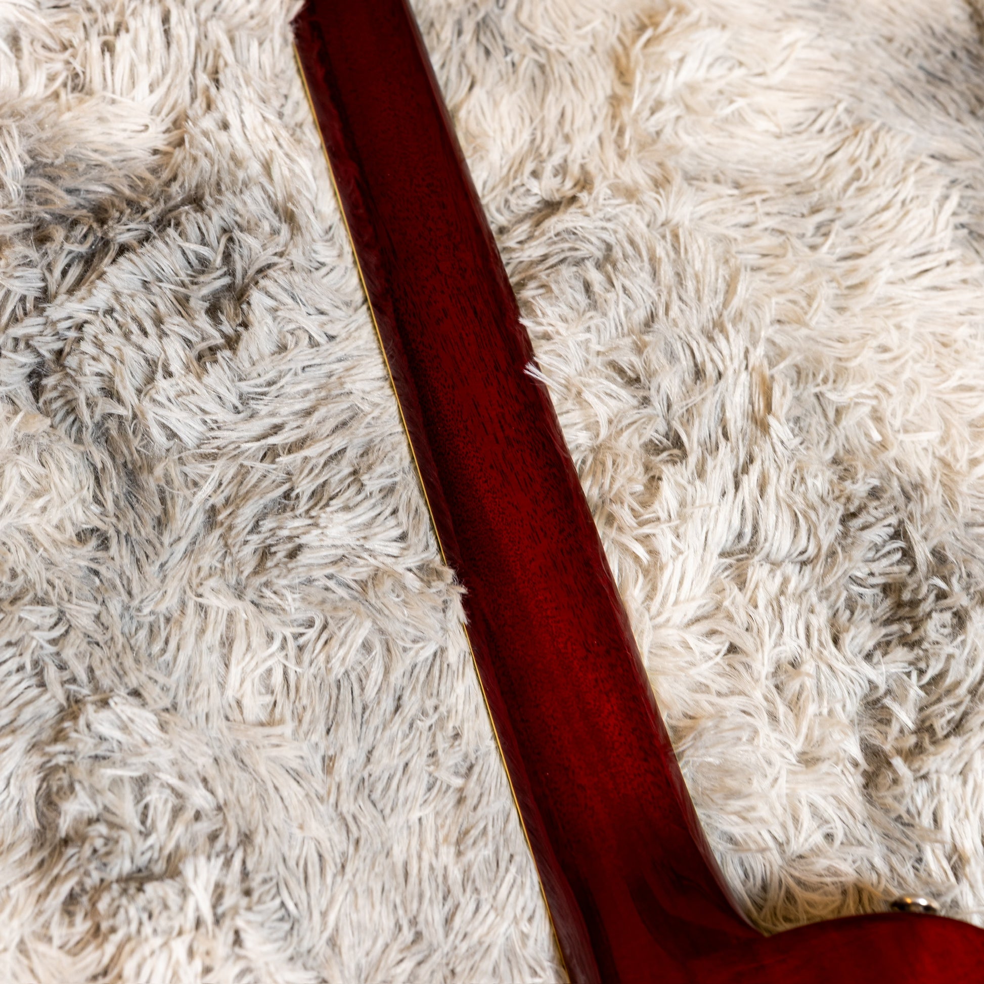 The flame top is absolutely striking in person — deep, vivid, and dynamic under light. Photos honestly don’t do the finish justice. The guitar is in excellent overall condition, with only a few minor bumps and light swirl marks here and there, nothing structural or distracting. There is some minor finish refraction visible in direct sunlight, but there are no cracks, splits, or finish failures. This appears to be cosmetic and may be factory-normal for this run, but I want to be fully transparent.